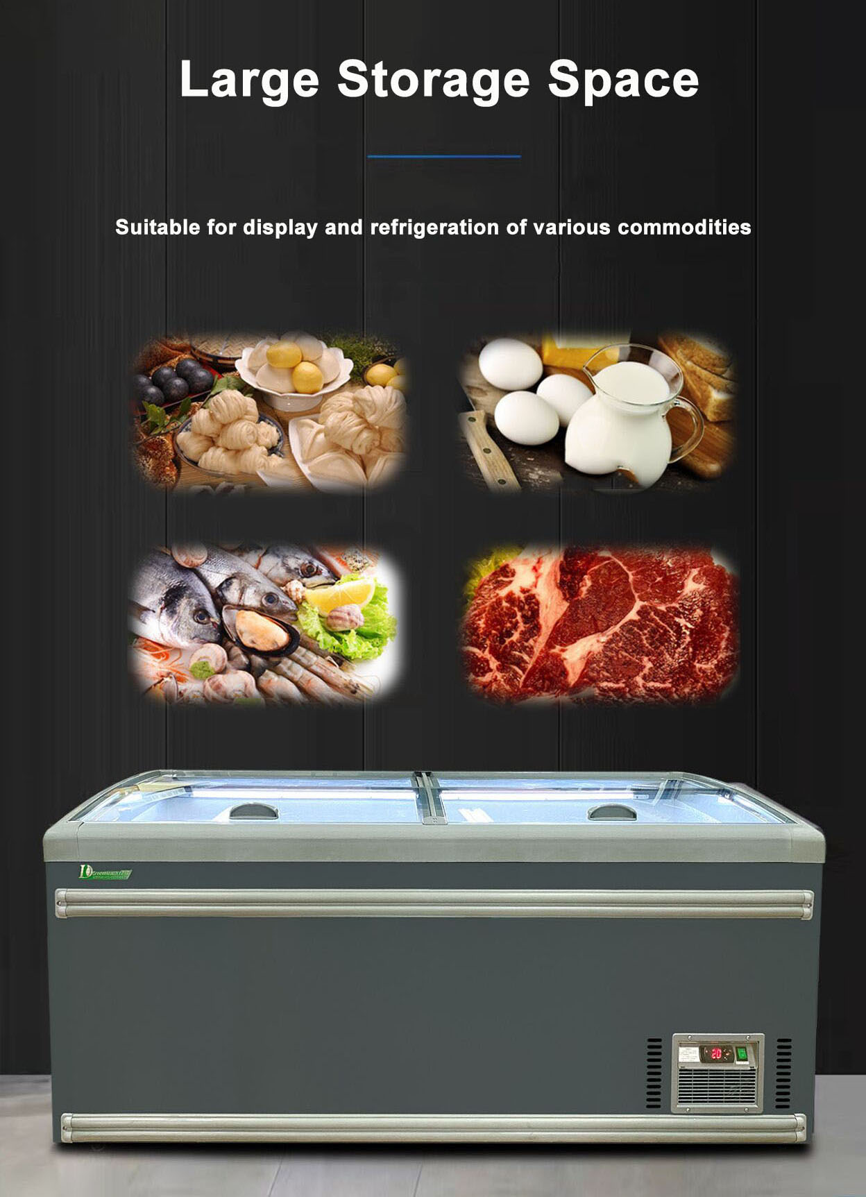 1.Super size straight line Island freezer.With plug-in installation, low operating costs and maintenance